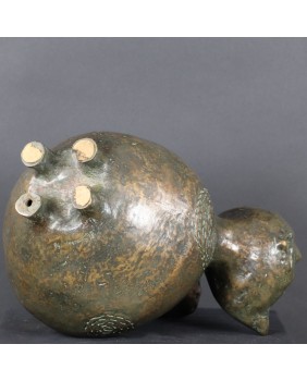 Prezentowanego kota Pani Monique nazwała „kotem uwodzicielem”. Według jej opisu jest to okrągły, uśmiechnięty kot, który przybył do nas z odległej cywilizacji. Wątki metafizyczne, parapsychologiczne często są tematem jej różnych publikacji i częścią prowadzonych w atelier zajęć. Duże znaczenie przykłada do materiału z którego powstaje rzeźba. Jej ulubionym jest glina.