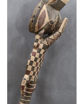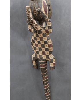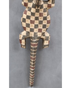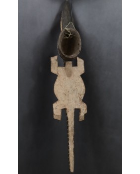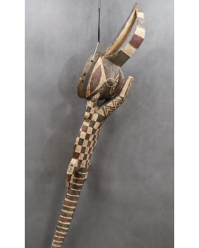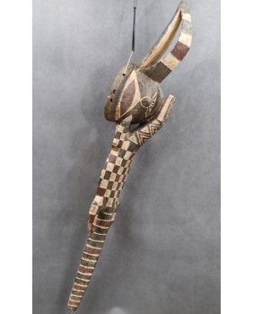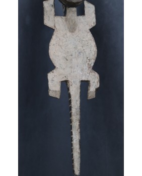 Maska, którą oferuję jest duża i bardzo efektowna. Jest niestety niezbyt stara. Myślę, że powstała pod koniec XX wieku. Ma 127 cm długości i 22 cm szerokości. W części hełmowej ma 23 cm wysokości.
