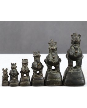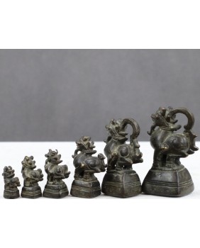 Przez kolekcjonerów nazywane Syjamskimi Odważnikami do Opium. W Birmie pojawiły się już w XI wieku. Od XVI wieku wzorzec wag był ustalony przez Króla i przechowywany w siedzibie Najwyższej Rady Stanu. Królewscy urzędnicy mieli prawo kontrolować zgodność odważników używanych przez kupców z królewskim wzorcem. Za pomocą niewielkich przenośnych wag ważono nimi cenne towary. Szlachetne kruszce, szlachetne kamienie, perły, leki i właśnie opium. Choć pełniły rolę czysto użytkową dbano o ich estetyczną formę. Przybierały postać symbolicznych zwierząt. Widziałem odważniki w kształcie kaczki, psa Foo, szczura, chimery, smoka, żaby. Odlewano je metodą na wosk tracony czasem były srebrzone.