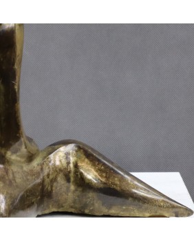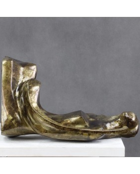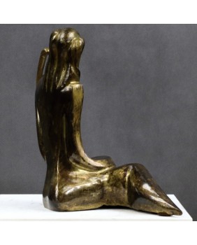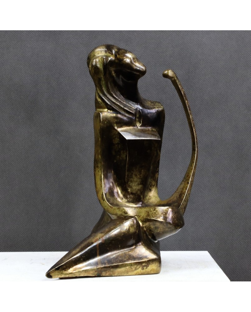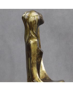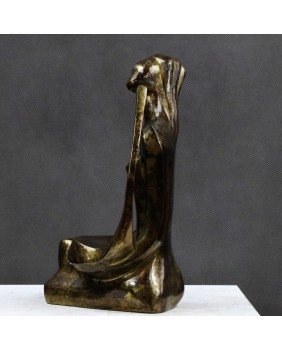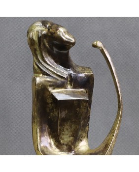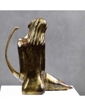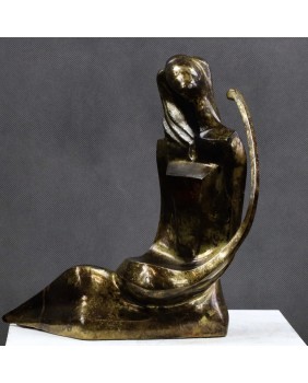 Lutnia trafiła na grunt europejski z krajów arabskich i Persji gdzie jest instrumentem popularnym do dziś. Niewiele skłamię jeśli powiem, że to właśnie wymyślny kształt tego instrumentu zdecydował w moim przypadku o zakupie tej rzeźby. Przywiódł na myśl perskie miniatury i klimat Baśni 1001 nocy .Nawet nie bardzo potrafię wytłumaczyć dlaczego tak się stało. Pewnie rzecz się działa na poziomie emocji i rozum nie ma tu nic do gadania. Mimo moich odległych w czasie skojarzeń rzeźba jest na wskroś nowoczesna. Prosta, minimalistyczna o kubistycznym zacięciu. Mimo, że artysta pominął zbędne jego zdaniem szczegóły - rysy twarzy, dłonie stopy -wydaje się absolutnie kompletna i doskonale oddaje ułożenie grającej na lutni kobiety. Patyna, choć nie jestem pewien, czy została położona celowo w tak nierównomierny sposób, fajnie rozbija gładkość wypolerowanych powierzchni. Efekt nawet jeśli niezamierzony jest doskonały i potwierdza słowa pewnego mojego znajomego, że jest zawsze dwóch twórców rzeźby. Artysta, który ją wykonał i upływający czas.