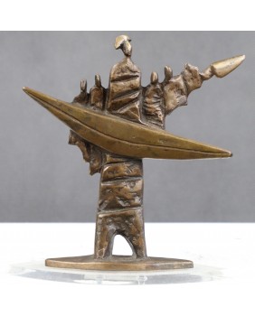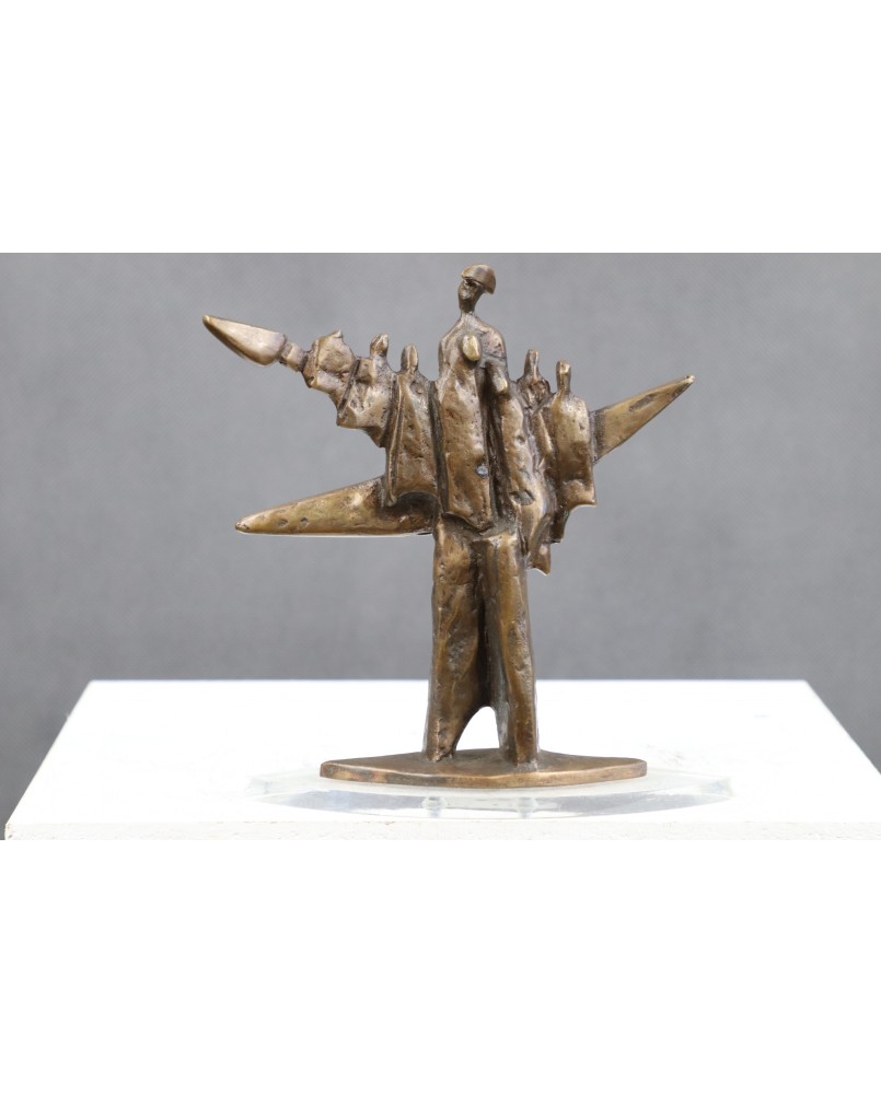 Tworzy cykle prac opatrzonych wspólnym tytułem. Rzeźba, którą oferuję pochodzi z cyklu „Samotni razem”. Przedstawia kilka, ledwie zaznaczonych sylwetek ludzkich. Mnie osobiście kojarzy się z załogą łodzi wypływającej w morski rejs. Judith Braun wykorzystuje w tej rzeźbie ulubiony motyw trójkąta, który podobnie jak półkole dominuje w większości jej prac. Pozostające na pograniczu kubizmu i abstrakcji dzieła artystki tworzą spójny, łatwo rozpoznawalny, charakterystyczny obraz świata tworzonego przez artystkę.