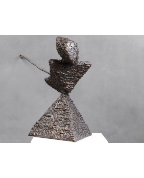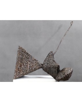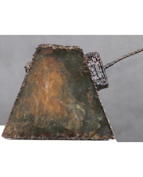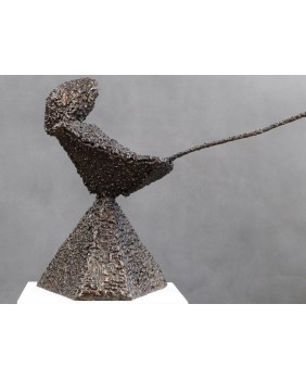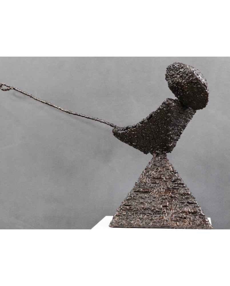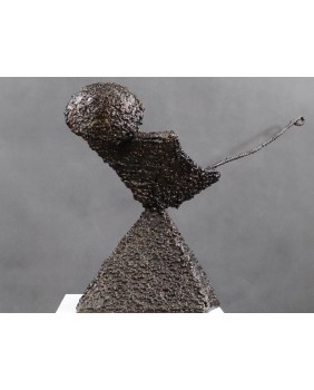 Rzeźba została zespawana z stalowych blach a więc jest produktem jednostkowym. Pokrywa ją piękna nieregularna faktura, która rozbija surowe bryły nadając im pewną lekkość i migotliwość.