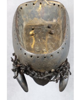 Ma jeszcze jeden ciekawy szczegół. Na szczycie maski znajduje się, ozdobiony muszelkami kawałek skóry zwierzęcej. Zakrywa on „ źródło mocy”, która ma budzić przerażenie przeciwników i wykrywać nieprzyjazne czary. Niewiele oferowanych na rynku masek takowe posiada. Miała zapewnić noszącemu ją magiczną ochronę.