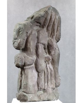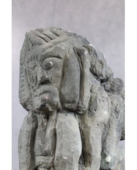 Także ta rzeźba została zakupiona na Kole. Sprzedawca twierdził, że obie pochodzą z Dolnego Śląska i zostały znalezione w zabudowaniach, które pozostały po starym zakładzie kamieniarskim. Nie wiem ile w tym prawdy ale pasowałoby to do mojej koncepcji przypisania obu rzeźb sztuce naiwnej.