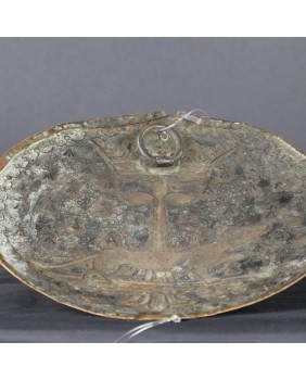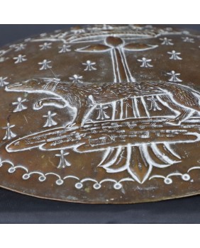 Blacha ma ok 20 cm szerokości. Wykonana została przez prowincjonalnego raczej artystę. Z dbałością o szczegóły ale bez maestrii. Wygląda bardzo archaicznie i osobiście sądzę, że jest stara. Wykonana pod koniec XVII wieku bądź w XVIII.