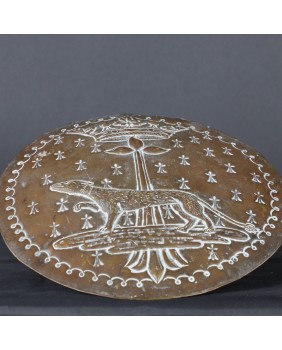 Blacha, którą oferuję, najprawdopodobniej odnosi się do herbu księżnej Bretanii, królowej Klaudii Walezjuszki, żony Franciszka I, która wstąpiła na tron Francji w roku 1514. Herb z gronostajem od czasów jej matki Anny związany jest tradycyjnie z Bretanią.