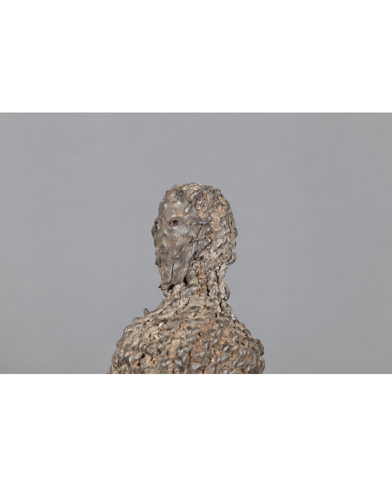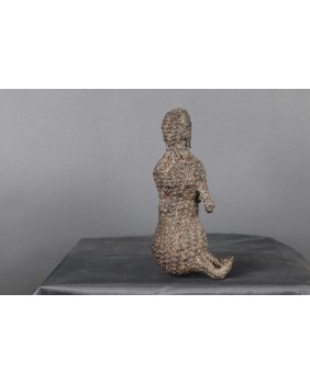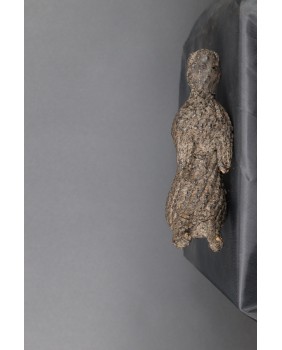 Egzemplarz, który oferuję ma 19 cm wysokości i 6 cm szerokości. Figura z trudem utrzymuje pozycje siedzącą co może potwierdzać, że były raczej przeznaczone do noszenia. Mnie urzekła twarz postaci wyglądająca jakby pochodziła z zaświatów.