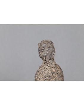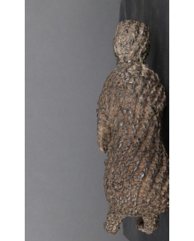 Podobną choć bardziej ogólną rolę ma do odegrania ten niewielki fetysz wyobrażający zapewne człowieka. Taki fetysz wykonuje samodzielnie młody mężczyzna. Widziałem ich wiele. Są zrobione z najróżniejszych materiałów. Drewna, metalu, obszyte bawełną czy tak jak w tym przypadku wyplecione ze skóry. Wspólną cechą wszystkich jest pewna toporność, nieporadność amatorskiego wykonania ludzkiej sylwetki. Nie bez znaczenia jest fakt, że nie służą one ekspozycji. Młody mężczyzna powinien nosić je przy sobie. Mimo powszechności, podobne obiekty bardzo rzadko trafiają do sprzedaży.