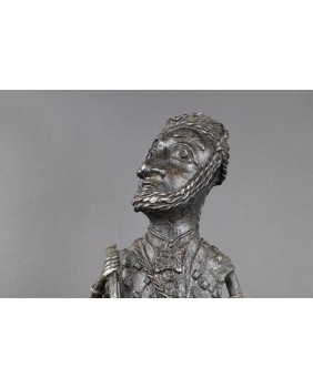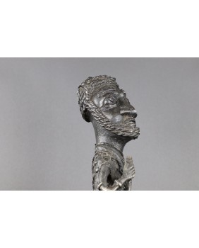 Figura afrykańskiego wojownika odbiega nieco od wzorców do jakich byłem przyzwyczajony w swych kontaktach z tradycyjną sztuką tego tego kontynentu. Niczego podobnego w dostępnych mi materiałach nie spotkałem tak więc w opisie przedmiotu posłużę się własnym doświadczeniem i autorskimi przemyśleniami na jego temat.