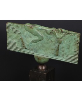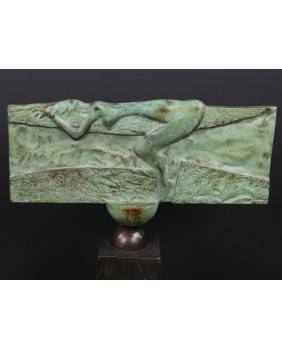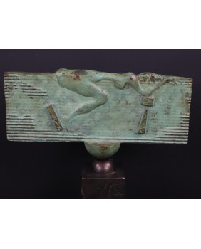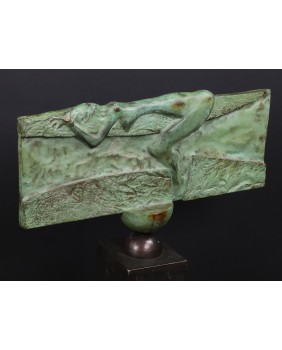 Rzeźba Jeana Jacquesa Hamarda skusiła mnie monumentalną prostotą geometrycznych brył. Dopiero bliższy ogląd pozwolił dostrzec sylwetkę nagiej kobiety „zwieszającej się” z górnej krawędzi rzeźby. Nie bez znaczenia była też wielkość tej rzeźby. Na rynku pojawia się niewiele okazałych dzieł z brązu a jeżeli już to są w horrendalnych cenach.