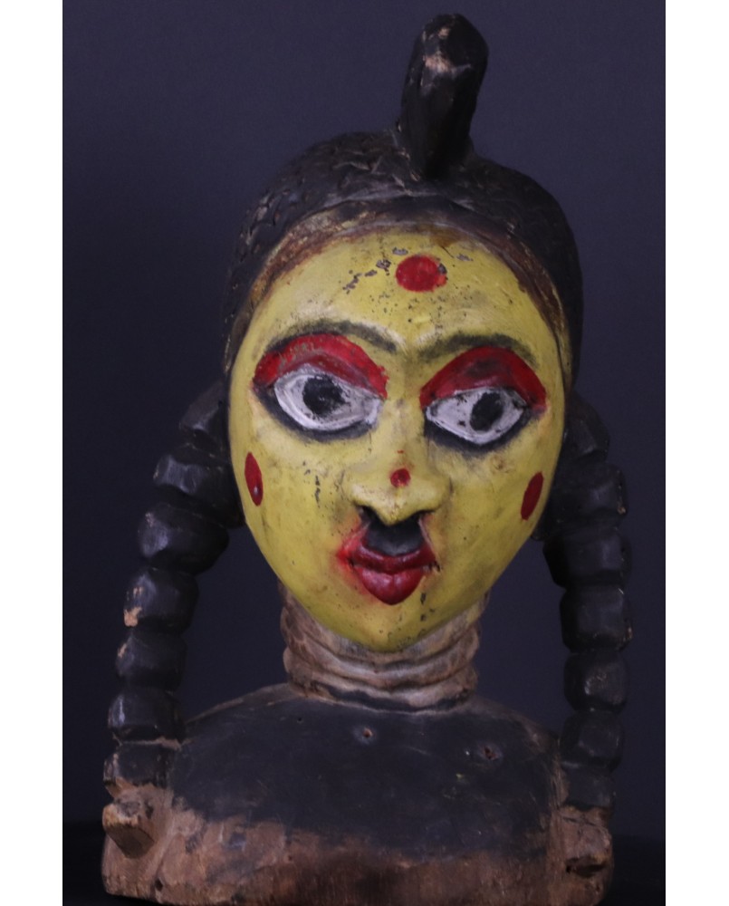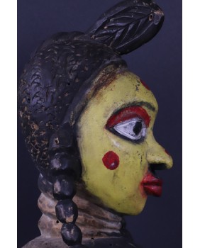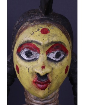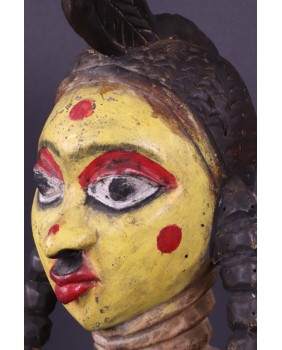Prezentowana maska jest częścią dużej, wielopiętrowej konstrukcji zasłaniającej postać tancerza. Stanowi jej wierzchołek. Maska ma 35 cm wysokości, 20 cm szerokości i 19 cm głębokości. Pomalowana jest w tradycyjne jaskrawe kolory.