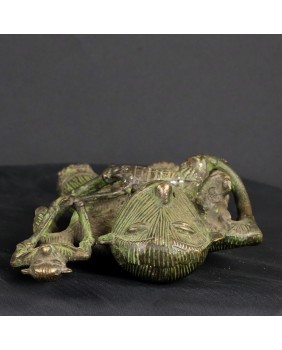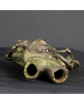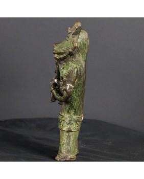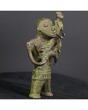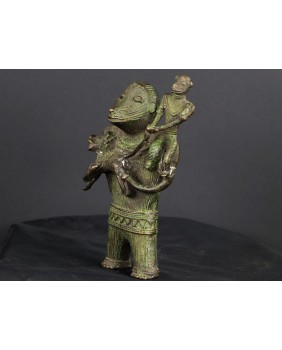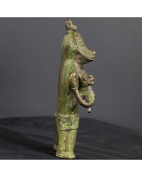 Z sztuką afrykańską jest tak, że jeśli pomyślnie zidentyfikuje się przedmiot to zwykle można odnaleźć taki sam lub o cechach bardzo podobnych. Sztuka ta jest powtarzalna, czerpie ze wspólnego wzorca. Niestety żaden z kierunków poszukiwań nie przyniósł efektu. Nie znalazłem nic podobnego. W końcu zamieściłem prośbę o identyfikację na anglojęzycznej grupie na fejsbuku specjalizującej się w sztuce plemiennej Afryki. I tu niespodzianka zostałem odesłany do północno-wschodnich Indii. Do prowincji Bastar. O sztuce odlewania metodą na wosk tracony pisałem już przy okazji wystawiania sowy z Dohry w Indiach. Kultury prymitywne używają tych samych środków do realizacji swych zamierzeń artystycznych niezależnie od kontynentu na jakim powstały. Łatwo się pomylić. Uznałem autorytet grupy i przypisałem rzeźbę zgodnie z sugestią.