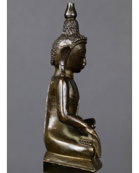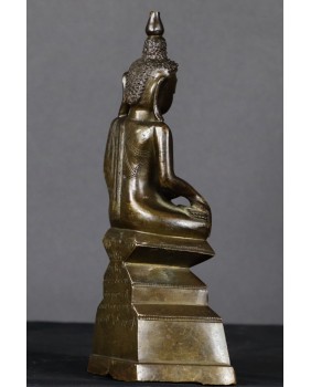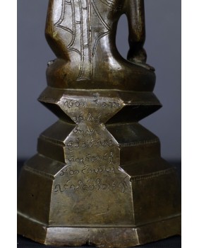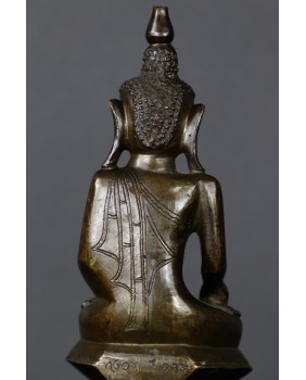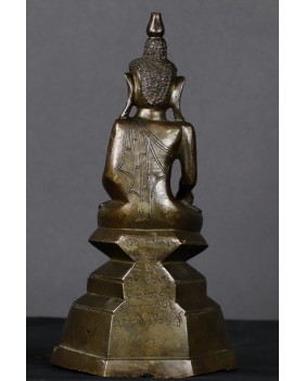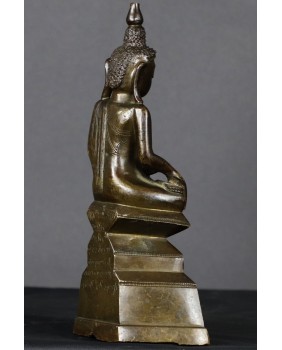 Prawdę mówiąc byłem zdumiony na ile sposobów da się przedstawić Buddę w mudrze bhumisparsha. Obejrzałem setki zdjęć przedstawiających Buddę w tym geście. Były to rzeźby wykonane z brązu, drewna, kamienia. Na podstawie własnego doświadczenia w ocenie wieku przedmiotów odlanych z brązu, jak też odnosząc się do wspomnianych fotografii uważam, że figura powstała wcześniej niż w XIX wieku. Tylko dla asekuracji dopuszczam możliwość wykonania brązu w XIX wieku. Jakąś wskazówką byłaby inskrypcja na tyle rzeźby niestety nie potrafię jej odczytać.
