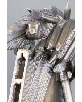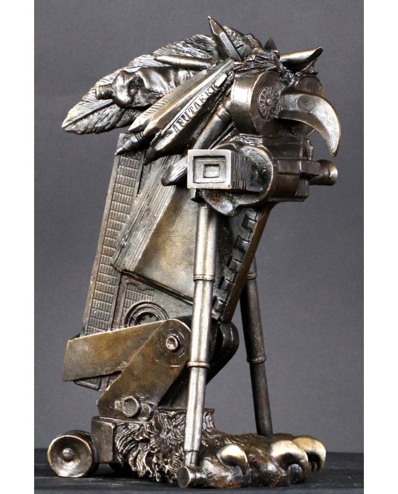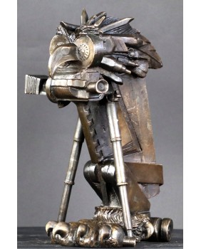 tworzące nowe wartości artystyczne i intelektualne. Ołówków, kredek, pędzli, tubki farby, notatnika, kasety video, kamery filmowej. Nie zabrakło gęsiego pióra. Ptak na lwiej łapie najbardziej przypomina kamerę z filmowego studia. Dokumentuje w praktyce nową ekspresję rzeczy znalezionych, jedną z dziedzin rzeźby, którą artysta się zajmował.