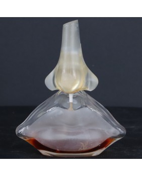 Za podobnie symboliczny można uznać także kształt flakonu z perfumami. Dali napisał kiedyś że aby być surrealistą trzeba całe życie malować oczy i nosy. Tu wprawdzie mamy usta zamiast oczu ale nos jest słusznego wymiaru a na dodatek dwustronny.