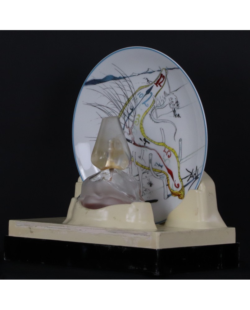 Oferowany zestaw składa się z oryginalnego pudła zaprojektowanego przez Dalego, porcelanowego talerza i flakonu z perfumami również wykonanego według jego projektu.