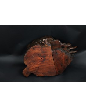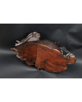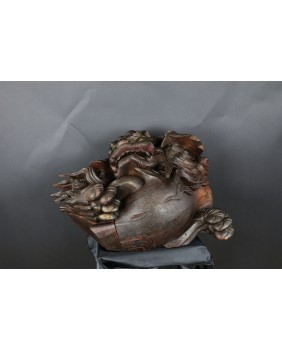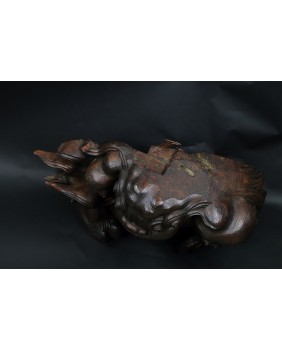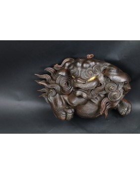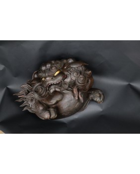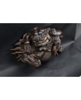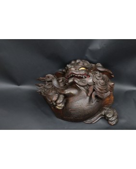 Rzeźba, którą oferuję jest bardzo ciekawa artystycznie. Lew jest zamknięty w kubistycznej formie, poza regularny owal wystaje jedynie łapa. Nie jestem znawcą epok w sztuce japońskiej, rzeźbę zachowawczo datuję na początek XX wieku ale tak naprawdę maestrii jej wykonania nie powstydzili by się dawni mistrzowie epoki Edo.