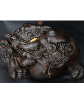 Komainu to na ogół para rzeźb pełnych. Płaskorzeźby, tak jak moja, były zwykle częścią większego reliefu. Wszystkie jakie oglądałem umieszczano na sporej wysokości, niemal pod sufitem czy dachem.
