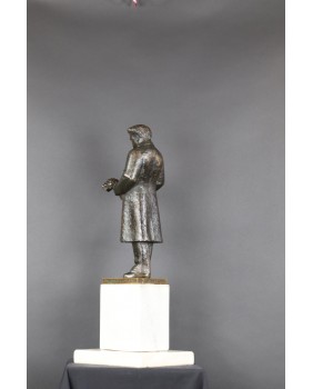 Rzeźba jest okazała. Sam brąz ma wysokość 37 cm a łącznie z marmurową podstawą 55 cm. Szerokość brązowej postaci to 14 cm podobnie jak jej głębokość. Podstawę stanowią dwie kostki. Pierwsza ma wymiary 12 na 12 na 15 cm. Dolna 20 na 20 na 3 cm.