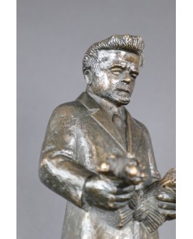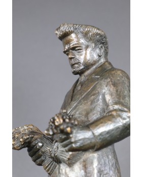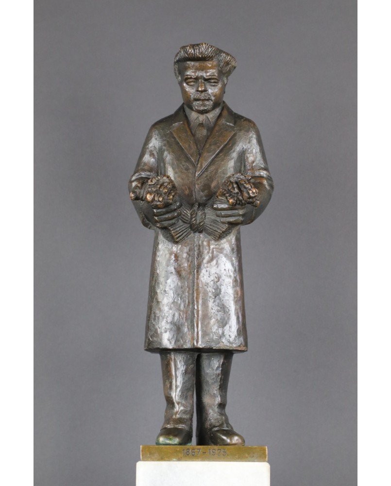 Jest kilka powodów dla których kupiłem tę rzeźbę. Wszystkie sentymentalne. Jest to redukcja pomnika Władysława Reymonta stojącego w Łodzi, mieście gdzie zaczynałem na poważnie swą przygodę z antykami w prowadzonym tam przez kilka lat antykwariacie. Drugi powód jest taki, że kocham Reymonta, może nie za „Chłopów”, za które pisarz otrzymał literackiego Nobla ale za „Ziemię obiecaną”. (Akcja powieści nota bene rozgrywa się w Łodzi).