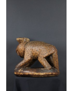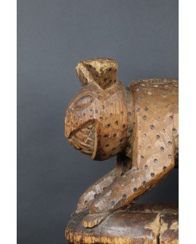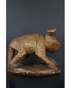 Lampart podpierał zwykle siedzisko stołka lub czaszę misy. W przypadku tej rzeźby wygląda na to, że powstała od razu jako przedstawienie lamparta bez funkcji użytkowej. A przynajmniej nie pozostał żaden ślad sugerujący, że kiedyś było inaczej.