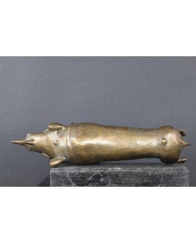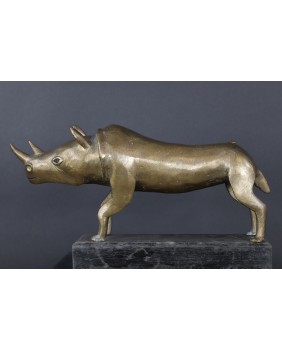 Być może ta rzeźba powinna trafić do kategorii „art tribal” mojego sklepu. Najprawdopodobniej powstała w Afryce ale sądzę, że ze sztuką plemienną, rytualną, magiczną niewiele ma wspólnego. Moim zdaniem to tylko próba odwzorowania nosorożca zgodna z wyobrażeniem artysty.