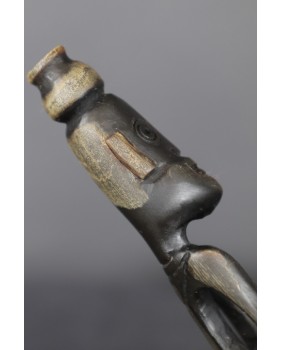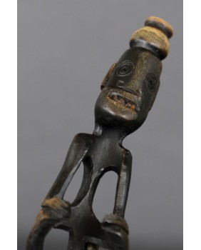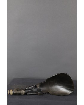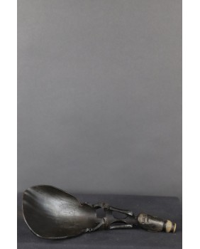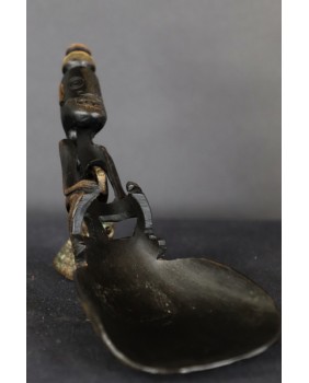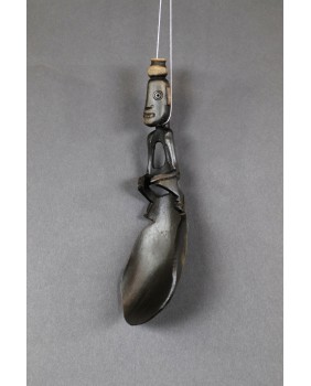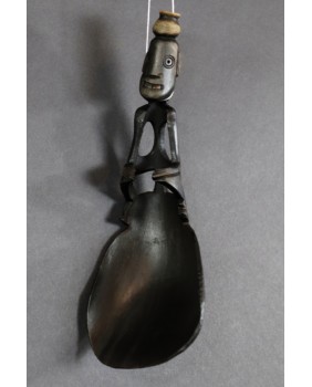 Łyżki od dawna są przedmiotem kolekcjonerstwa. Pierwszym znanym ich kolekcjonerem był Max Ernst a za nim poszli inni równie znani surrealiści. Niestety większość znawców jest zdania, że ostatnie piękne okazy wyjechały z Timoru w latach siedemdziesiątych. Tę kupiłem z gabloty francuskiego kolekcjonera mam więc nadzieję, że jest z początku drugiej połowy XX wieku. Łyżka ma 22 cm długości. Szerokość czerpaka wynosi 8 cm, postaci na trzonku 13 cm.