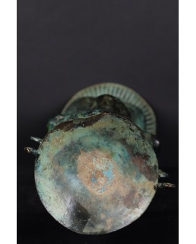 Rzeźba ma 46 cm wysokości i 12 cm szerokości, średnica okrągłej to 12 cm. Brąz pokrywa ciemnozielona sztucznie nałożona patyna. Powstała zapewne w drugiej połowie XX wieku.