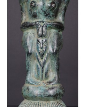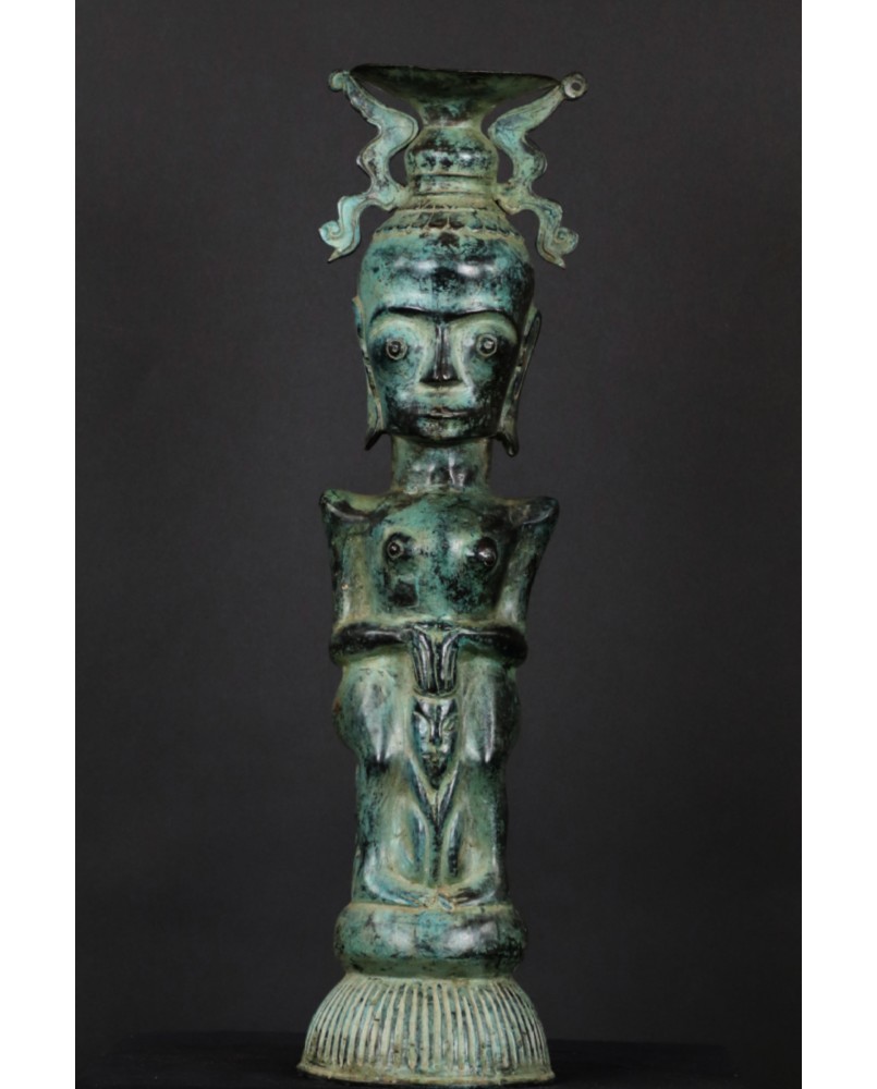 Postać przedstawia zapewne przodka mającego pełnić rolę opiekuna, strażnika broniącego dostępu złym mocom do chronionego terenu. W tym przypadku chodzi zapewne o domostwo i to raczej zamożnych ludzi. Figura kończy się niewielką miseczką do codziennego składania ofiar. Postać siedzi na innych niewielkich postaciach, w sposób pozwalający sądzić, że zostały one pokonane, zdominowane, unieważnione. Są zapewne symbolem złych mocy, najczęściej chodzi o te przynoszące choroby, zarazę, śmierć.