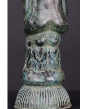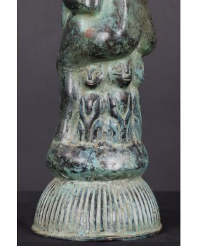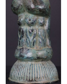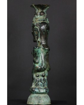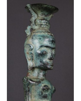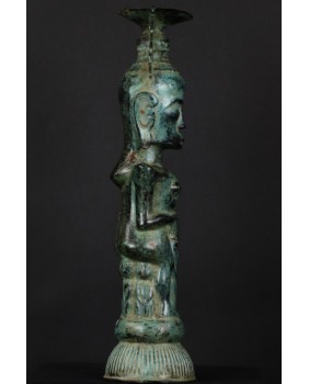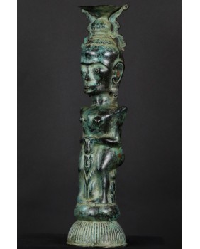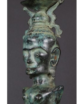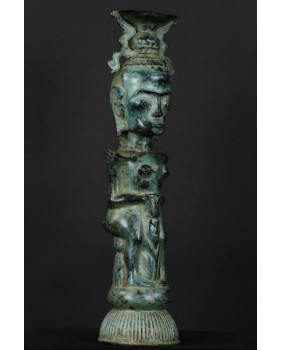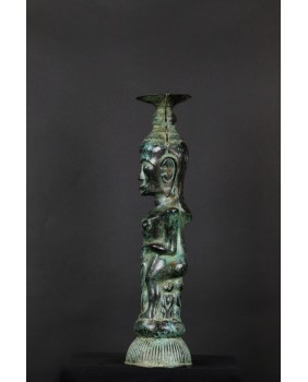 Sądzę, że rzeźba którą sprzedaję to dwudziestowieczna figura nawiązująca do dawnej plemiennej sztuki Bataków. Być może zrobiono ją dla potrzeb religijnych rytuałów. Dla wygody użytkowników wykonano ją z brązu choć stare rzeźby powstawały z lokalnie dostępnych materiałów, przede wszystkim z drewna, które niestety w tamtych warunkach atmosferycznych szybko ulegało zniszczeniu.
