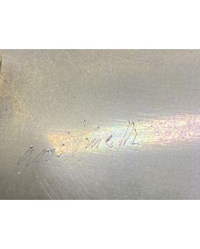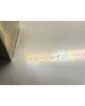 Z autorstwem rzeźby mam znowu kłopot. Jest odręcznie podpisana rylcem na gotowym dziele. Niestety odręczne pismo jest niewyraźne. Odczytałem podpis jako Agos Tmelh. Jednak głowy za poprawność podpisu nie daję. I nikogo o takim nazwisku wśród współczesnych rzeźbiarzy nie znalazłem a nie wydaje mi się aby rzecz mógł wykonać amator.
