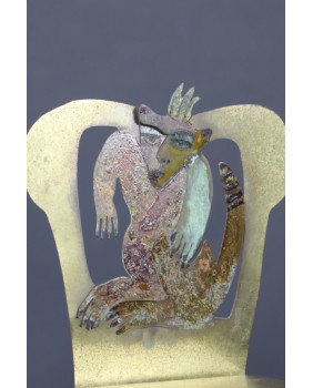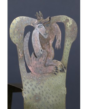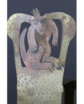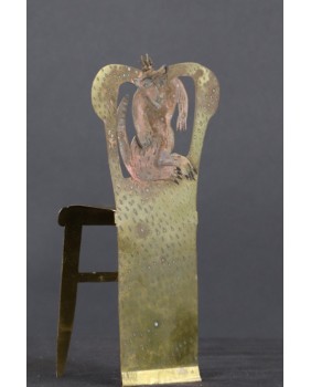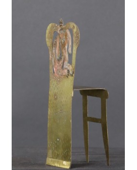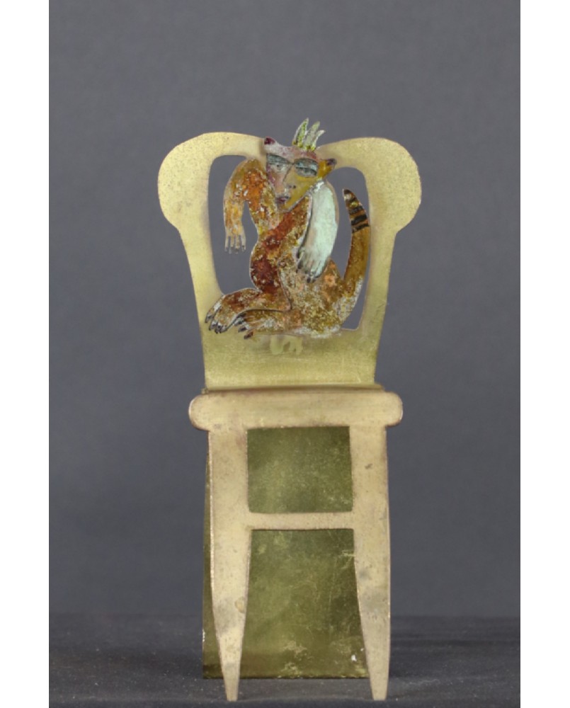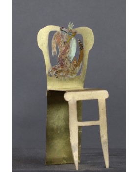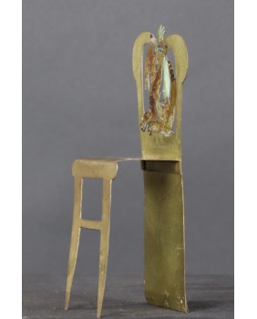 Rzeźba jest niewielka, co tylko podkreśla mistrzostwo i precyzję wykonania. Szkoda, że warstwa farby nie zachowała się w pełni ale na pewno jest do uratowania niewielkim nakładem pracy. Fotel ma 19 cm wysokości, 9 cm szerokości i 7 cm głębokości.