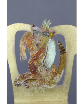 Ta rzeźba czy może raczej kompozycja intryguje. Nierealne zwierze, które równie dobrze może być małpą, kotem lub lwem. Na dodatek spersonifikowane ludzką twarzą. Z atrybutem przypominającym królewską koronę. Na prywatny użytek nazywam postać „małpim królem”.