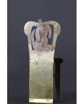 Ta kompozycja oprócz przestrzennych walorów rzeźby ma też wymiar malarski. To pięknie namalowany obraz, który zmienia się w zależności od kąta pod jakim odbija światło. Obraz, który gdyby był w większym wymiarze, bez wstydu można powiesić w każdej galerii ze sztuką XX wieku. Oszczędność użytych środków jest odwrotnie proporcjonalna do siły jego wyrazu. Ta twarz pełna jest zadumy, powagi a nawet smutku. Całość kojarzy mi się z opuszczonym królewskim krzesłem, przestrzegającym następcę, że czeka go niełatwe zadanie.