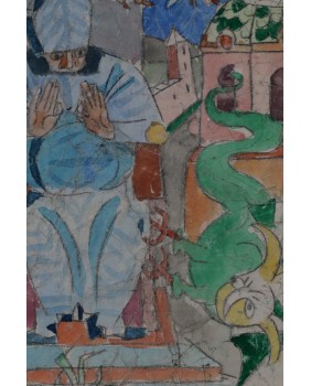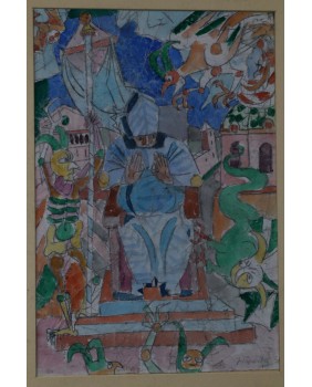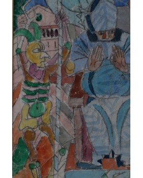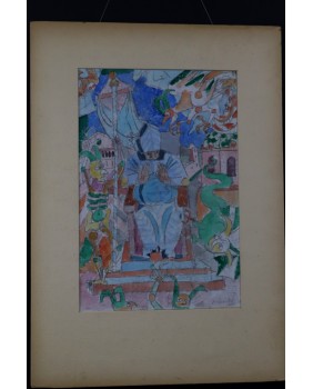 Obraz namalowany jest na kartonie. Sprzedaję ze starym passe-partout choć zdaję sobie sprawę, że profesjonalnie oprawiony bardzo by zyskał. Całość ma wymiar 70 na 50 cm a w świetle oprawy 47 na 32 cm.