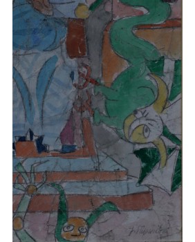 Pod koniec lat pięćdziesiątych w swą twórczość artysta zaczął wplatać opowieść. Używał groteski, ironii, humoru. Na obrazach pojawiły się fantastyczne, nierealne stwory. Pojawiła się także faktura, która powstawała na wskutek zgniecenia i rozprostowania przez malarza kartonu.