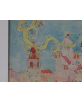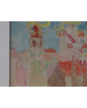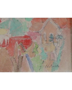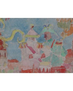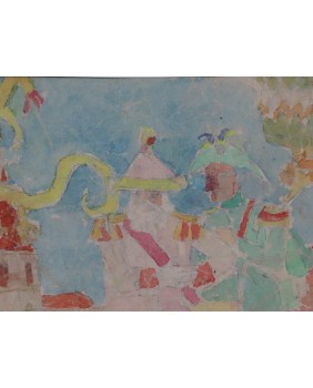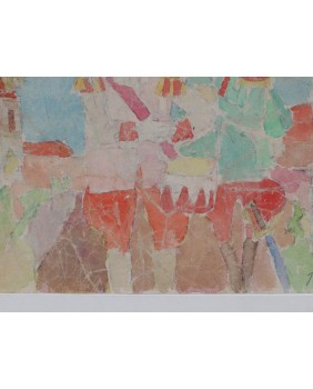 Obraz jest sygnowany. Namalowany na kartonie. Liche passe-partout ma wymiar 70 na 50 cm. Zamalowana część kartonu ma wymiar 41 na 20 cm.
