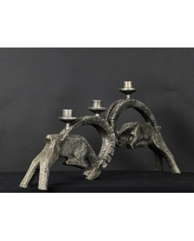 Sylwetki dwóch walczących koziorożców tworzą harmonijną całość i choć walka zwykle kojarzy się z chaosem i dynamiką to ta kompozycja wydaje się być statyczna. Nie zaburza jej nawet asymetria świecznika. Twórca użył oszczędnych geometrycznych form chcąc nam powiedzieć, że w tej walce wszystko jest z góry ustalone, nie poleje się krew, że chodzi jedynie o ustalenie pozycji samca alfa, że tak się dzieje w przyrodzie od zawsze.