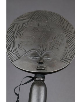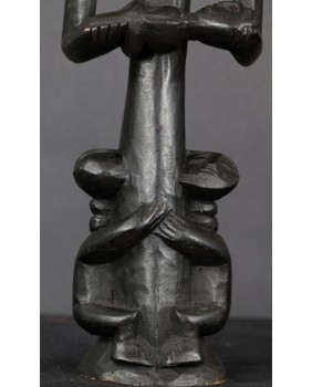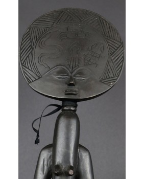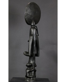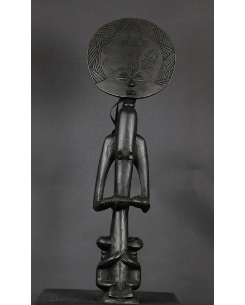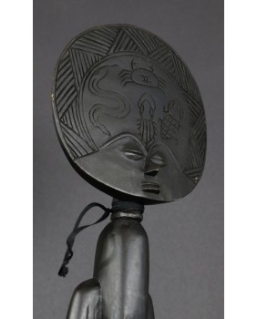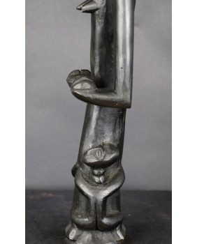 Rzeźba nie jest stara. Myślę, że powstała w drugiej połowie XX wieku. Jest w niezłym stanie. Z pośród innych tego typu talizmanów wyróżnia się dodatkowymi symbolami na twarzy. Ma 60 cm wysokości, 20 cm szerokości i 7 cm głębokości.