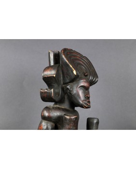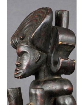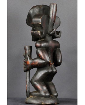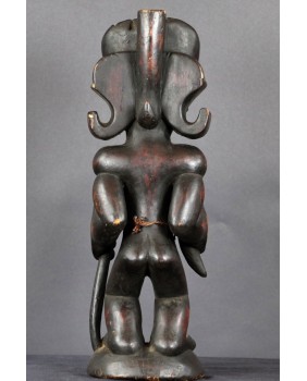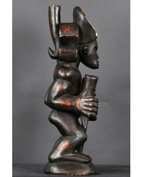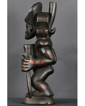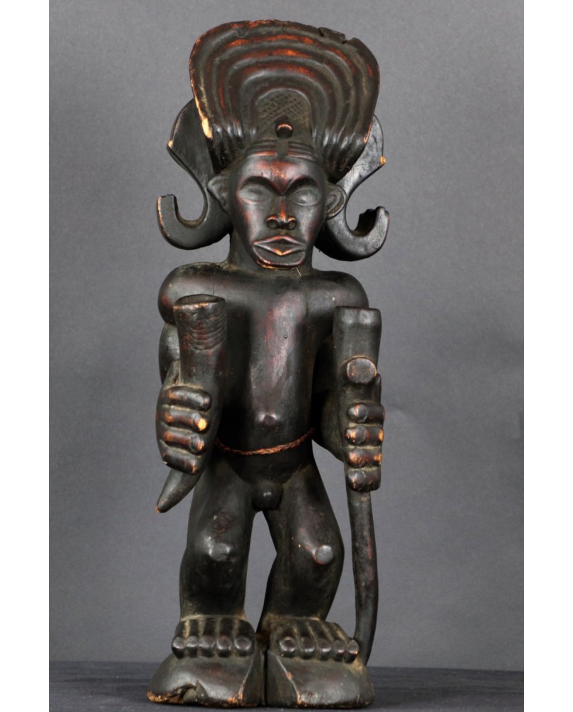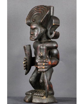 Rzeźba, którą oferuję jest typowym przedstawieniem króla Ilungi. To stojący na ugiętych nogach (jakby gotowy do skoku), muskularny, krępy mężczyzna. Jego głowę zdobi potężna fryzura, rodzaj królewskiej korony. Postać trzyma w ręku kij, symbol władzy i róg antylopy zawierający magiczną substancję, dającą królowi nadprzyrodzone, boskie moce. Rzeźba symbolizuje siłę, męstwo, majestat i inteligencję króla.