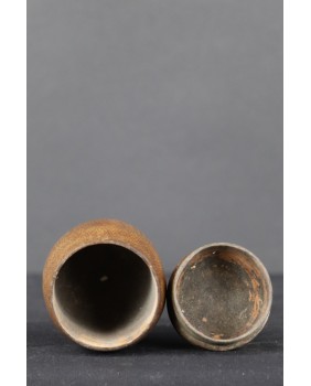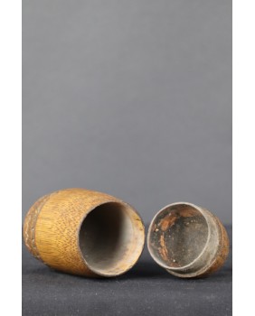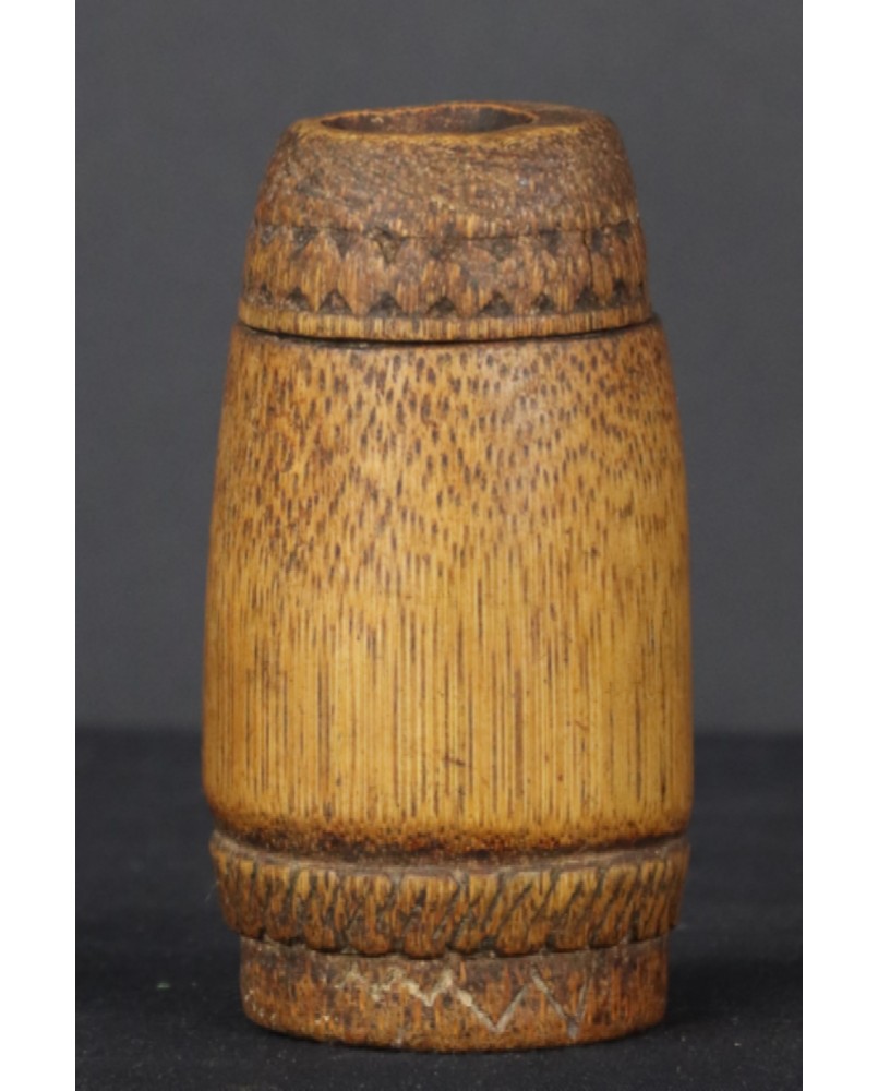 Pojemnik, który oferuję kupiłem razem z dużym zbiorem rzeźb, łyżek, spinek do włosów, bawełnianych pudełek, który po zmarłym kolekcjonerze z Belgii trafił do Polski. Jestem w stu procentach przekonany o jego autentyczności.