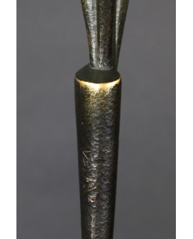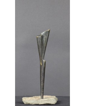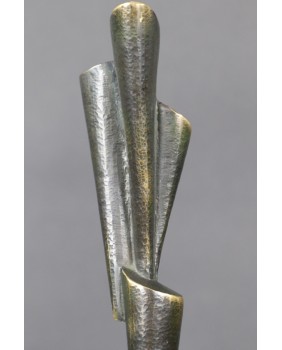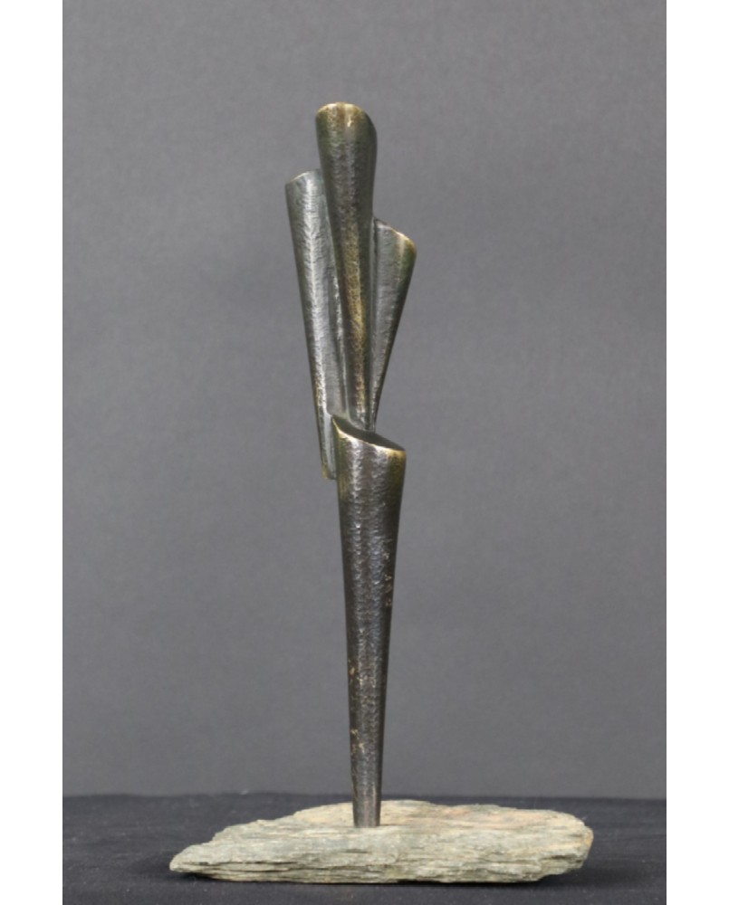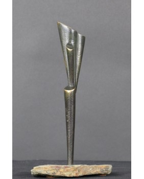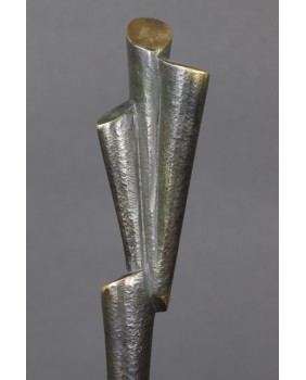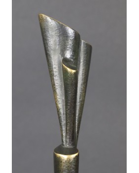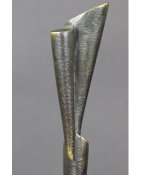 Rzeźba, którą oferuję należy do tych, w których widać szczególną dbałość twórcy o oszczędność. Oszczędność formy. Jest minimalistyczna do bólu, żeby nie powiedzieć uboga. Ale to częsty zabieg Rafalika. Maksymalna kondensacja wypowiedzi, prostota zawarta w geometrycznym kształcie. W dzisiejszym świecie żądającym od artysty wciąż więcej i więcej, dyscyplina Kazimierza Rafalika jest godna podziwu.