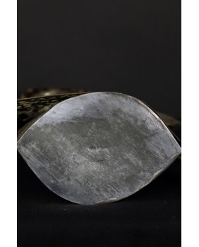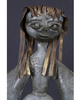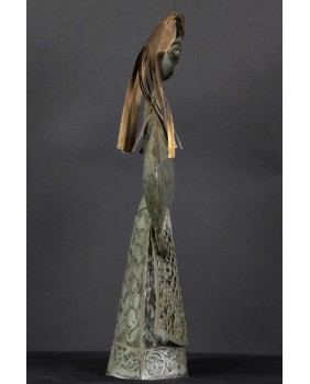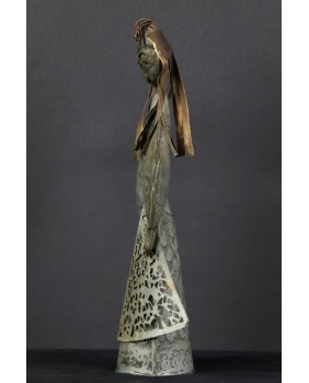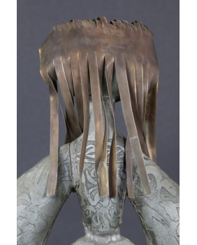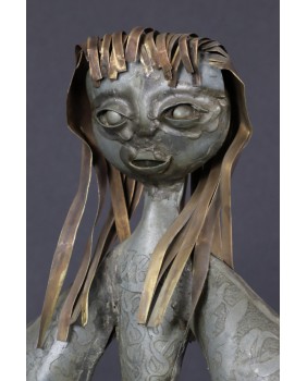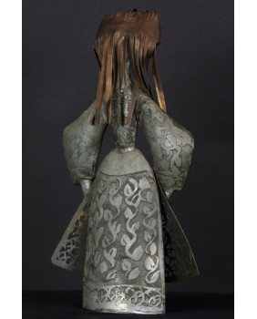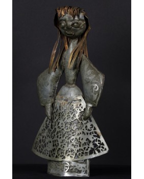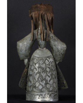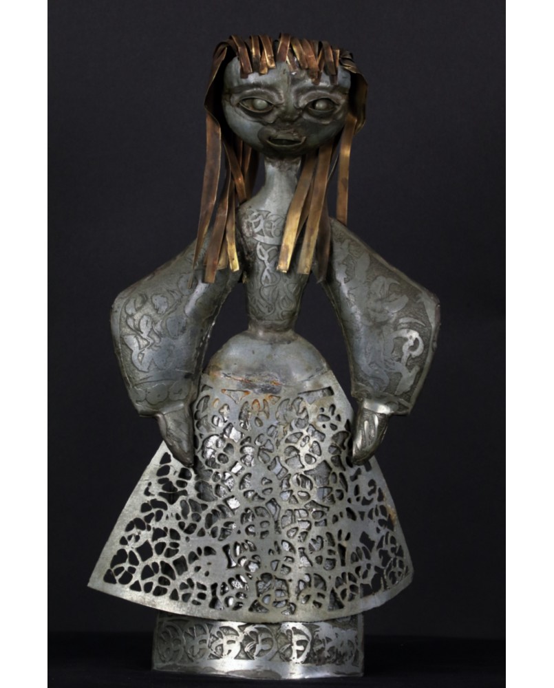 Tego dziwnego wyboru dokonałem powtórnie. Tym razem moim łupem padła rzeźba przedstawiająca chłopkę. Zapewne artysta udokumentował strój i fizjonomię jednej ze swoich mazurskich sąsiadek. Być może technika,w której tworzył te niewielkie postacie, nie jest najlepszym sposobem na ukazanie piękna kobiecej twarzy. Przynajmniej mi osobiście odbiór tej rzeźby zakłócają nierówności pozostałe po lutach łączących cynkowe elementy.