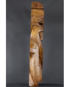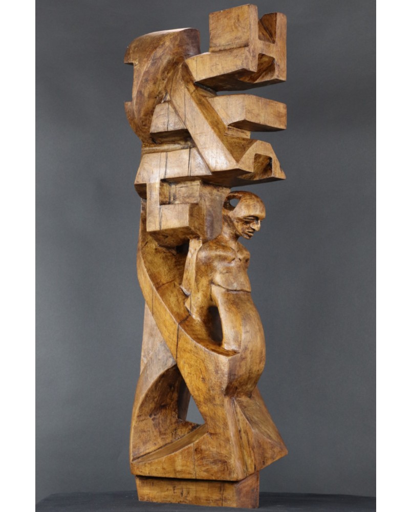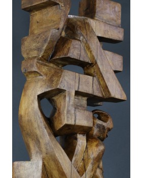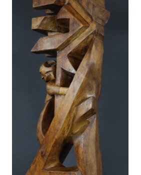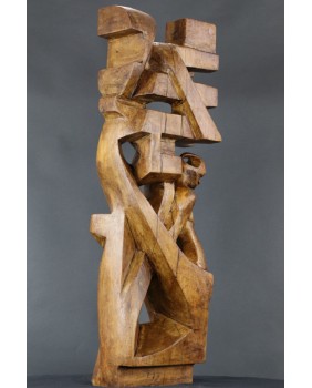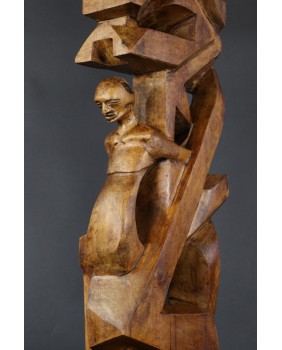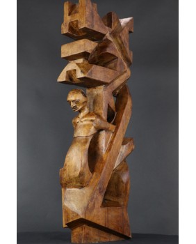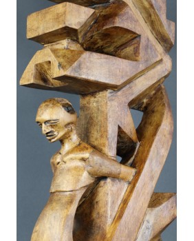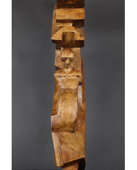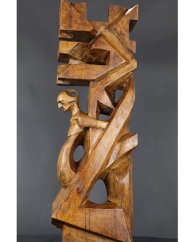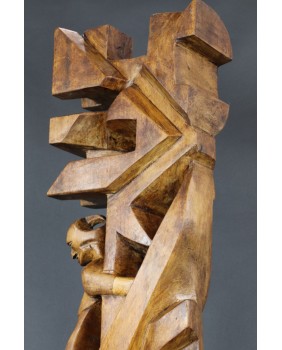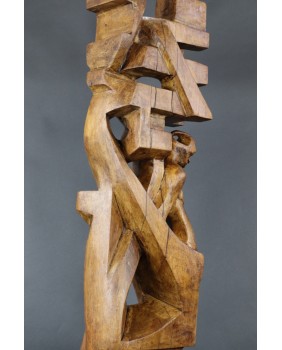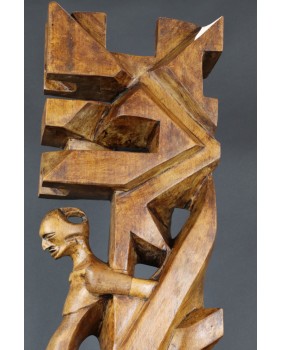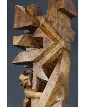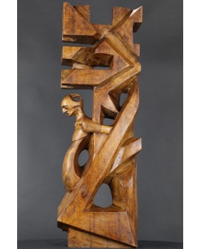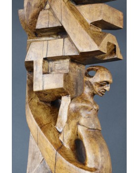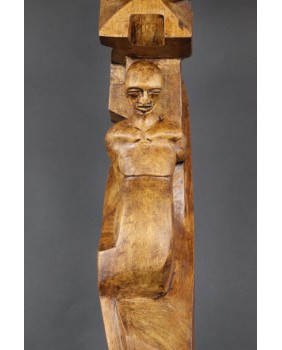 Rzeźbę kupiłem w Polsce choć wiem, że wcześniej przyjechała z Belgii. Bardzo długo sądziłem, że jest nie sygnowana. Kupiłem ją dla jej niewątpliwej urody. Zafascynowała mnie postać czy może raczej kariatyda wpisana w misterną, geometryczną konstrukcję nawiązującą do najlepszych wzorów europejskiego futuryzmu i konstruktywizmu z początków XX wieku. Dodatkowych walorów dodaje rzeźbie, moim zdaniem, materiał z jakiego powstała. Drewno to materiał bardzo tradycyjny, pozostający w opozycji do nowoczesnego przekazu artystycznego dzieła.
