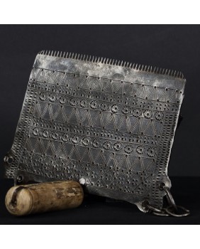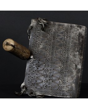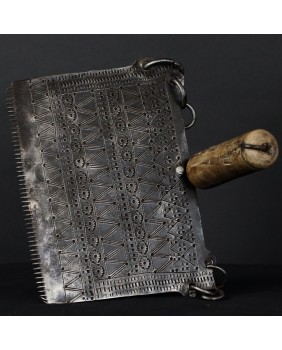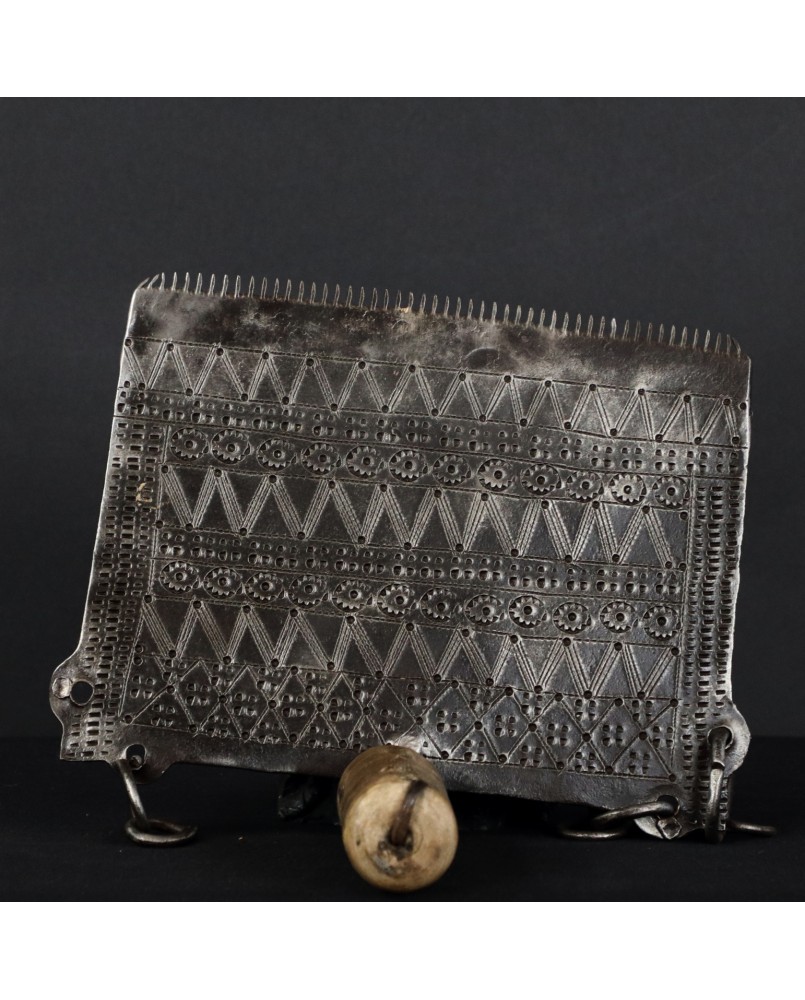 Nie znam się na technikach tkania. Wiem natomiast, że grzebień jest piękny jeśli można tak powiedzieć o rzemieślniczym narzędziu. Zachwyca mnie rytmiczny wzór wykonany przy użyciu naprawdę prostych środków. To rewelacyjny przykład sztuki kowalskiej odpowiadający stylistyce Północnej Afryki.