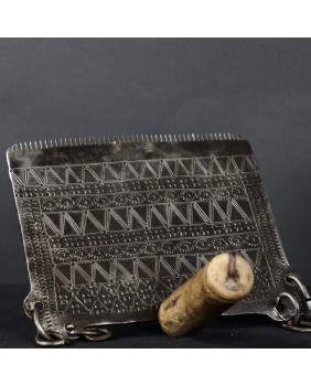 Narzędzie pochodzi z Afryki Północnej. Kupiłem je dawno temu we Francji i na parę lat przepadło w czeluściach mojego magazynu. Według zapewnień sprzedawcy należało do Berberów. Służyło w warsztacie tkackim. Nawiasem mówiąc Berberowie od wieków znani są z produkcji dywanów i kilimów. Głównie wełnianych.