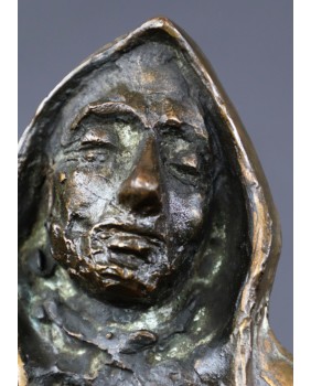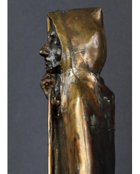 W tej konkretnej rzeźbie podziwiam realistyczne opracowanie szczegółów, twarzy, dłoni i stóp zderzone z prostym, kubistycznym tułowiem okrytym zakonnym habitem. Pozostawienie na habicie faktury pochodzącej z formy odlewu nadaje jej dodatkowo nowoczesny charakter i intryguje. Samej twarzy nawet najbardziej uznany mistrz dłuta nie mógłby się powstydzić. Jest wyrazista, smutna, pełna skrywanego bólu.