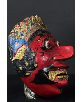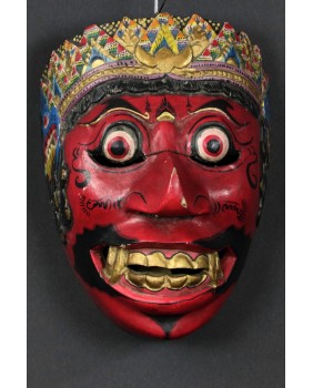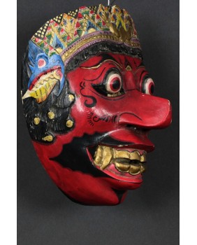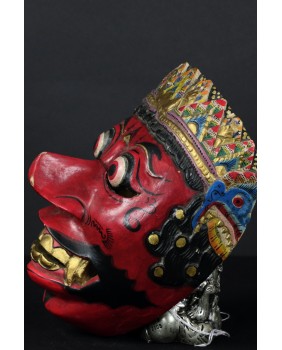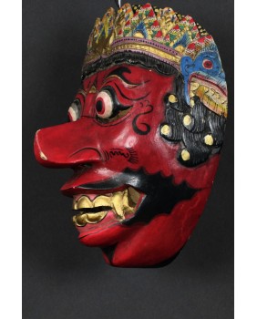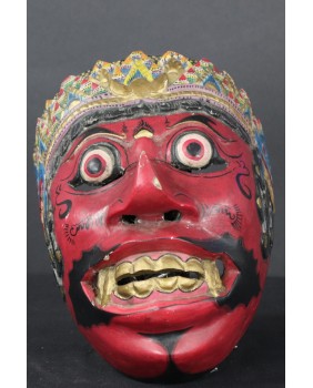 Zaskoczyły mnie ceny masek Kelana. Są bardzo wysokie. Normą jest kilkaset euro. Maska, którą proponuję ma jak sądzę kilkadziesiąt lat. Doskonale trzyma się kanonu przedstawień Kelany. Jak wszystkie te maski nawiązuje do starych archetypicznych przedstawień demona. Z wytrzeszczonymi, wypukłymi oczami, długim nosem, odsłoniętymi kłami i zębami. Wykonana została tradycyjnie z lekkiego drewna.Ma 20 cm wysokości, 15 cm szerokości i 13 cm głębokości.