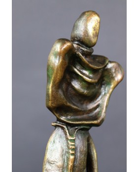 Rzeźbę kupiłem w Polsce. I mam nadzieję, że tu została wykonana. Prawdopodobnie została odzyskana ze skupu surowców wtórnych. Może o tym świadczyć ślad pilnika na tyle postaci, którym jakiś troglodyta sprawdzał czy aby na pewno cała wykonana jest z kolorowego metalu.