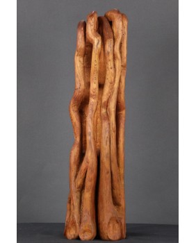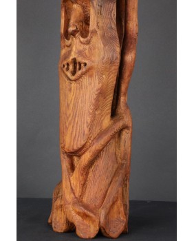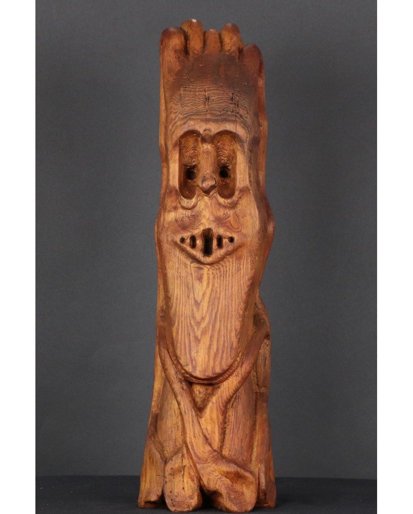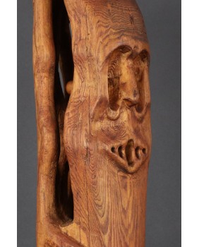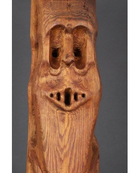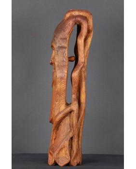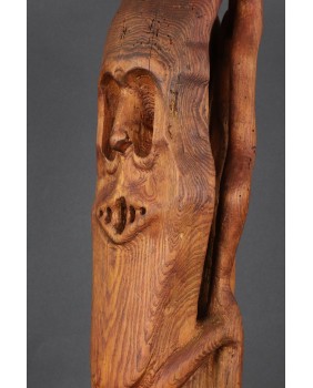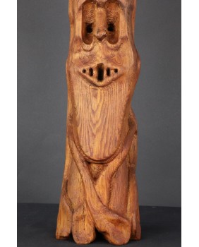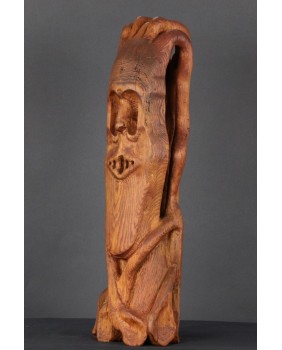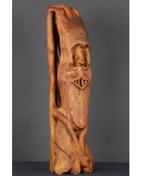 Mam wrażenie, że ta rzeźba najwyraźniej uświadamia fakt, że mamy do czynienia z artystą nieprofesjonalnym. Widać tu a przynajmniej ja tak ją odbieram, niedostatek abstrakcyjnego myślenia, syntetycznego przekładania zamysłu twórczego na obraz. Mówiąc krótko rzeźba jest „przegadana”. Nie można natomiast odmówić jej autentyczności, naiwnej oryginalności, ekspresji. Nie pozostawia odbiorcy obojętnym. Rzeźba albo się podoba albo wkurza. W każdym z tych przypadków skłania do refleksji. Mnie kojarzy się z głową leśnego ducha lub utopca z bagien.
